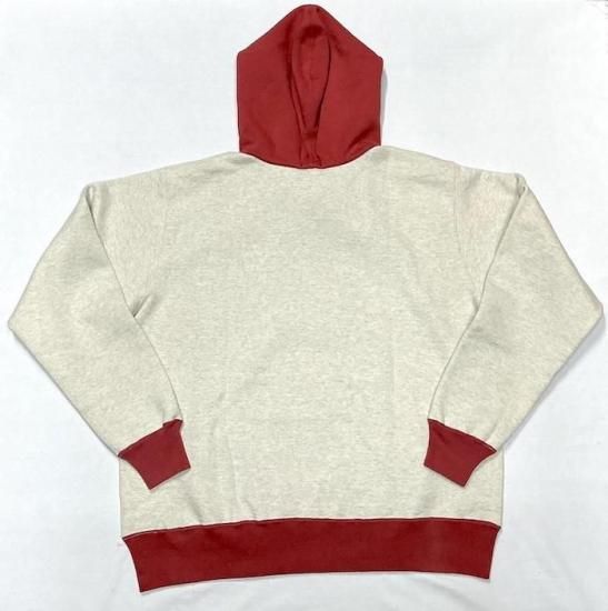 このパーカーの生地は、20/20/7のヘビーなスウェット生地を使用。表糸、中糸、裏糸の組み合わせがしっかりとした質感を実現し、着心地の良さを追求しています。身頃は丸胴仕様で、リブは10番手の糸で編み立てられたリブが、シルエットにメリハリを与えています。また、フード部分の生地は1枚仕立てで、首元にはガゼットが付けられているので、見た目だけでなく機能性も優れています。さらに、縫製には2本針を使用しているため、丈夫で長持ちするのもポイントです。